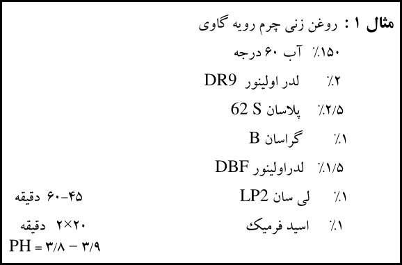 محدوده كاربرد : لدراولينور DBF براي روغن زني انواع چرم بخصوص چرم گاوي