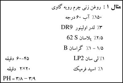 محدوده كاربرد : لدراولينور DR9 براي روغن زني انواع چرم بخصوص چرم گاوي